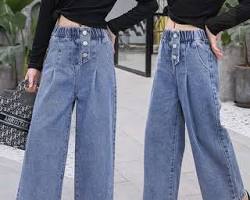 Áo thun + quần jean ống rộng cho bé gái 13 tuổi